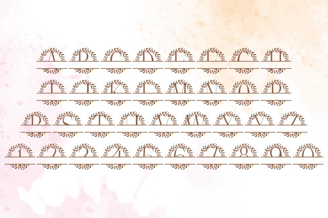 Herbalique Split Monogram Font is an elegant serif split font enhanced with graceful herbal and leafy accents. Each uppercase letter features a horizontal split for easy personalization with names, dates, or messages, while botanical details wrap around the letterforms for a natural, refined touch. Perfect for weddings, branding, signage, and personalized crafts, this font brings timeless beauty with a customizable design.