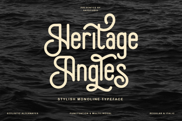 This font is used only for demos (Demo license). If you want to use this font for commercial use please contact: https://creativemarket.com/saystudio/290913390-Heritage-Angles