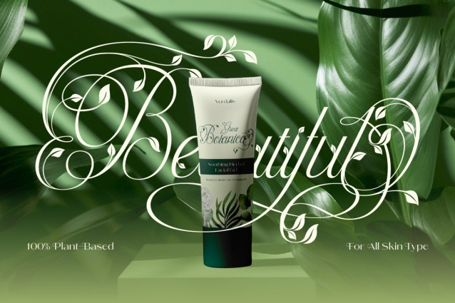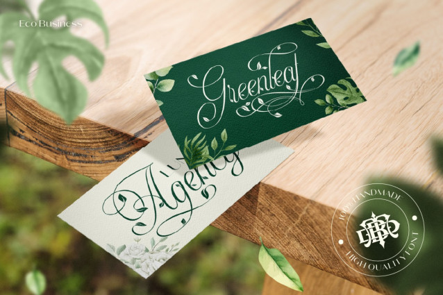Herlyna Font, a beautiful fusion of classic elegance and soft, flowing leaf ornaments, inspired by the gentle trails of climbing vines. Herlyna comes in two styles: Regular and Vine. Inspired by delicate vines and graceful leaf ornaments, Herlyna brings a touch of fresh air and natural luxury into every letterform. Perfect for eco-branding, wedding stationery, herbal products, and high-end logos, this typeface blends flourishing calligraphy with a modern organic feel. It includes multiple stylistic alternates to help you customize your typography effortlessly.