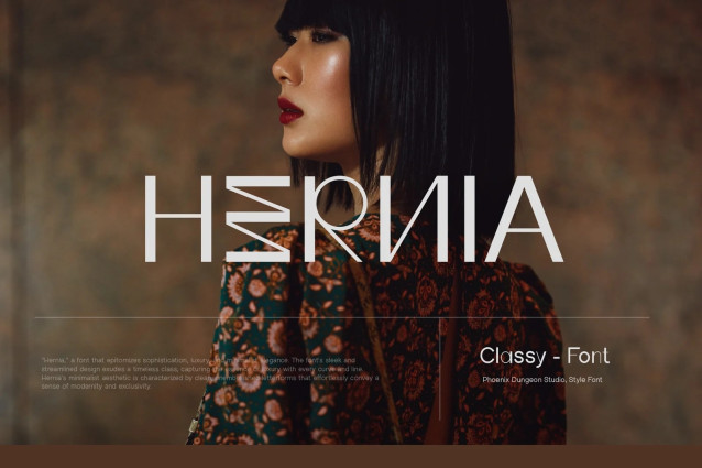 Hernia Font is a sophisticated sans-serif font that combines timeless elegance with modern fashion sensibilities. Its clean, well-defined letterforms exude a sense of class and refinement, making it ideal for high-end branding, editorial design, and luxury fashion projects. The font’s sleek lines and balanced proportions evoke a classic aesthetic, while subtle design details give it a contemporary, stylish edge. Perfect for upscale magazines, logos, and formal presentations, Hernia captures the essence of both classic and classy typography, offering a polished and professional look that stands out in fashion-forward designs.