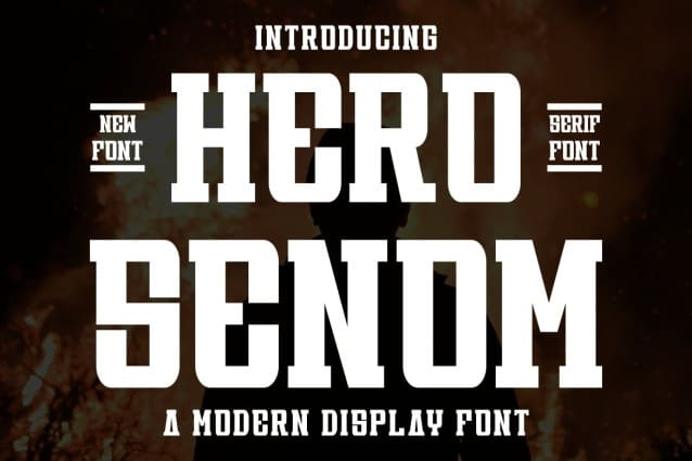 Hero Senom Font is a modern and simple font ideal for displaying headlines, Logos, branding, magazines, product packaging and invitations. HeroSenom features clean lines and gentle curves that give any project an extra touch of class
