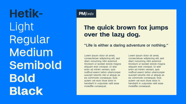 Built for performance, Hetik features 1392 Glyphs and supports over 200 languages with extended Latin, Greek, and Cyrillic glyph sets, plus IPA for linguists and educators. Whether you’re working on interfaces, logos, print layouts, or mobile apps, Hetik delivers crisp readability and a refined typographic voice.