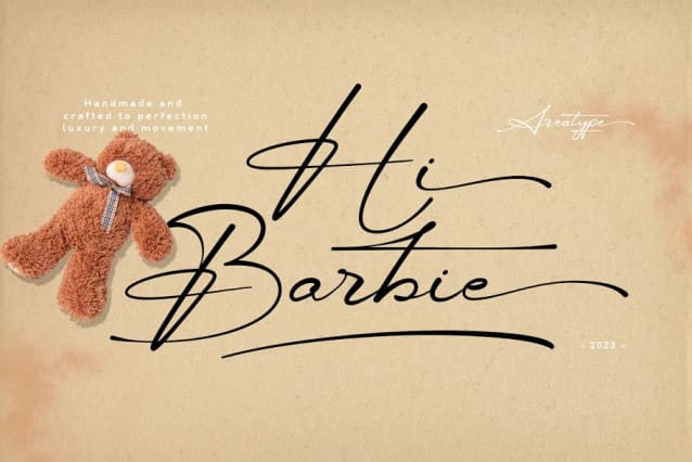 Hi Barbie Font is a lovely calligraphic handmade modern, I hope you are interested in this font, dynamic and pretty with swashes. Can be used for many purposes. such as title, signature, logo, wedding invitations, letterhead, signage, labels, newsletters, posters, badges, etc.