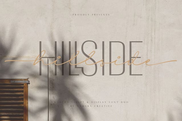 Hillside Font Duo a perfect blend of simplicity and elegance! This font duo features a clean and minimalist display font, which is ideal for creating a modern look. Additionally, the cursive script font style exudes sophistication and elegance, making it a great choice for personalized and decorative designs. The Sans & Script font duo is versatile and can be used for various design projects such as logos, branding, invitations, packaging, and more.