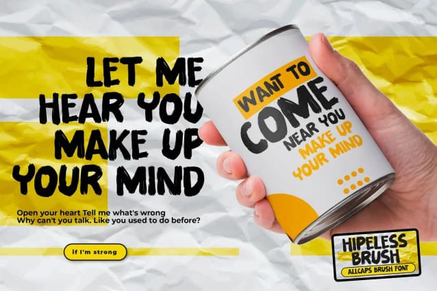 Hipeless Brush Font, this is a All Caps Brush Font that is written casually and quickly. Font Strong Style and classy style this font are made with brushes on Procreate. Then crafted carefully drawn into vector format.this font is great for your creative projects such as watermark on photography, and perfect for logos & branding, photography, invitation, watermark,advertisements,product designs, stationery, wedding designs,label ,product packaging, special events or anything that need handwritting taste. Hipeless Brush a natural handwritten feel. This handmade font will make your design has a beautiful natural touch for each details. It is perfect for any design project as Invitation,logo, book cover, craft or any design purposes.