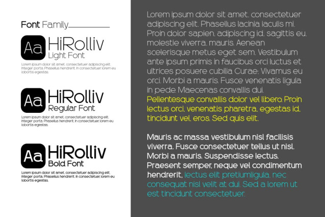 HiRolliv Font – This is a modern sans-serif font, with thin bars and a minimalist style. The letters are of relatively even height, creating a sense of balance and ease of reading.