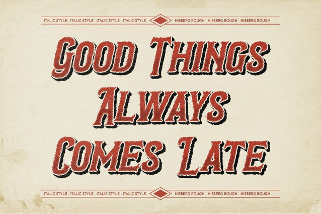 Rough Texture for a Bold, Worn Finish What sets Hisberg Rough apart is its distinctive rough texture, giving it a weathered and tactile feel. The uneven edges and textured strokes replicate the charm of letterpress prints and aged signage, enhancing the fontâs bold visual personality and bringing depth to your design.