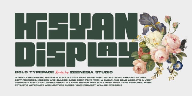 Hisyan Font is a Bold style sans serif font with strong character and soft features. modern and classic sans serif font with a clear and bold look. It’s a very versatile font that works great in large.