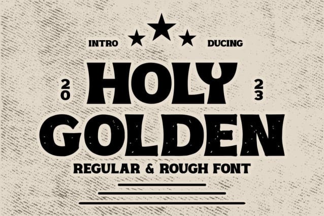 Holy Golden Font – Bold Retro And Classic font is a robust font that effortlessly combines retro charm and classic elegance. It offers two versions to choose from: a clean version and a rough, textured variant. With its nostalgic and classic aesthetic, this font brings out the vintage vibe of any design. Perfect for logos, posters, stickers, business names or brands, headlines, titles, business cards and quotes, Holy Golden adds a timeless touch to your creative projects.