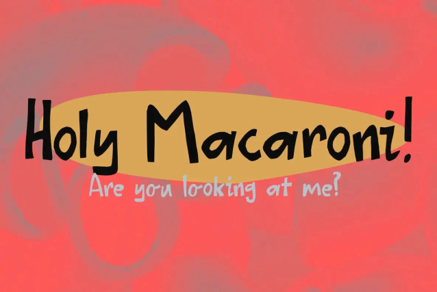 This font is used only for demos (Demo license). If you want to use this font for commercial use please contact: https://www.myfonts.com/collections/holy-macaroni-font-kitchen-table-type-foundry