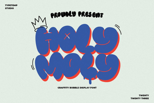 Holymoly Display Font – Bubble Graffiti Display Font a font with Graffity Bubble Style. Comes with alternatives and ligatures, helps to create stunning Posters, Branding, Tshirt, Social Media Graphics and much more.