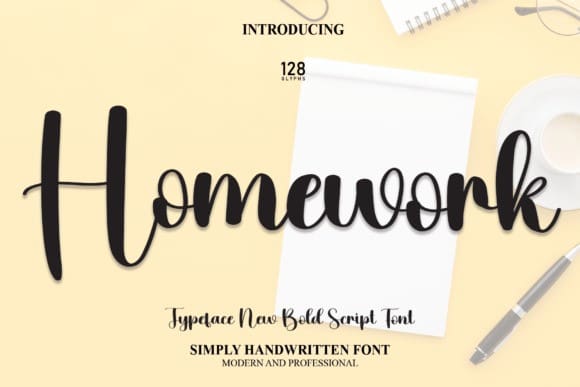 Homework Bold Font, perfect for wall displays, wedding invitations, social media post logos, advertisements, product packaging, product designs, labels, photography, watermarks, invitations, stationery, and any project that requires handwritten taste.