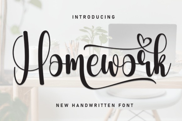 Homework Calligraphy Typeface is a flowing handwritten font, described by an elegant touch, perfect for your favorite projects. Fall in love with its incredibly distinct and timeless style and use it to create spectacular designs!