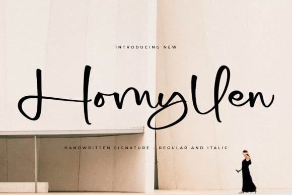 Homyllen Script Font is a handwritten signatire font, suitable for a variety of projects such as logos, branding projects, homeware designs, product packaging, mugs, quotes, posters, shopping bags, t-shirts, book covers, name cards, invitation cards, greeting cards, labels, photography, watermark, special events, and all your other lovely projects that need a beautiful script taste.