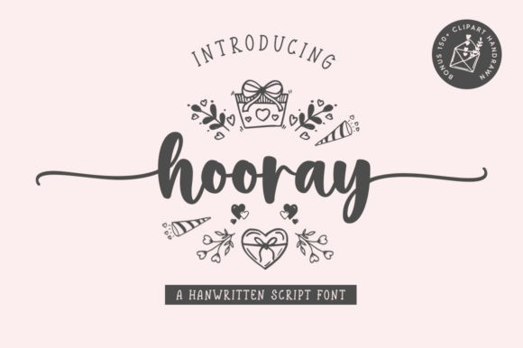 Hooray Script Font is a lovely script font featuring charming, playful characters that seem to dance along the baseline. Add it to your most creative ideas and notice how it makes them come alive!
