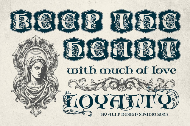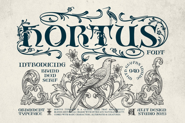 Hortus Font, a masterfully crafted decorative typeface that breathes life into the grandeur of classical European and Greco-Roman art. Inspired by ancient stone carvings, lush botanical illustrations, and ornate manuscripts, Hortus masterfully blends historical charm with intricate natural beauty.