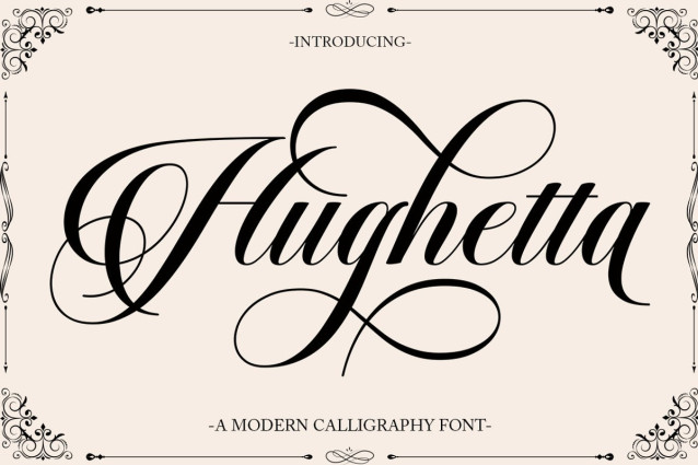 Hughetta has 368 , including multiple language support. It features OpenType with alternative styles and elegant binding. The OpenType features don’t work automatically, but you can access them manually and for best results your creativity will be required in combining variations of these Glyphs. And also a touch of ornament makes this font look elegant.