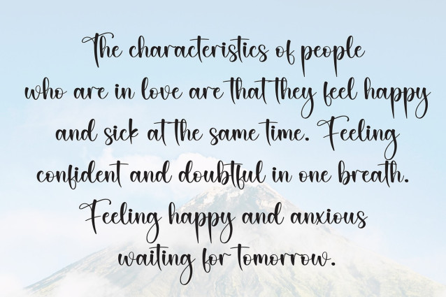 This font is perfect for your creative ideas, both formal and informal. It has a modern style with a touch of creative ideas that is very suitable to be applied anywhere that requires creative ideas such as invitation cards,letterheads, website logos, social media, banners, advertisements, brochures, packaging products, leather products, and any product that requires writing.