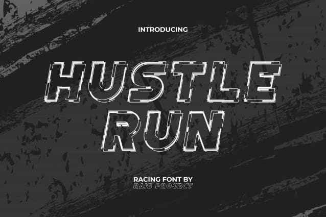 Hustle Run Font is a sporty modern futuristic picturesque racing font by RaisProject. This font is designed with enough detail to create a unique appearance, but is still clearly readable. It will be good for any designs, such as advertisement, brand image, custom design, invitation, label, marketing material, poster, product packaging, quotes, signage, stationery, website page, and more!