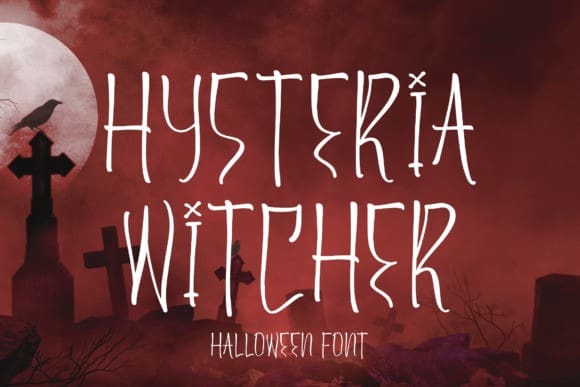 Hysteria Witcher Font – Halloween Font , from Perspectype Studio, suitable for any projects such as: logos, branding projects, homeware designs, product packaging, mugs, quotes, posters, shopping bags, t-shirts, book covers, name card, invitation cards, greeting cards, label, photography, watermark, special events, and all your other lovely projects that need a beautiful script taste.