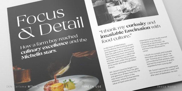 Inspired by the elegance of classic Didones but firmly rooted in contemporary design, IKN Karisma is playful yet refined, striking yet versatile. It brings its own brand of charisma to titles, headlines, subheads, branding, packaging and editorial use.