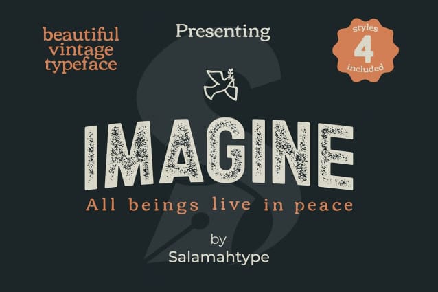 This font is used only for demos (Demo license). If you want to use this font for commercial use please contact: https://creativemarket.com/Salamahtype/10257411-Imagine-Vintage-Sans?u=fontlot123