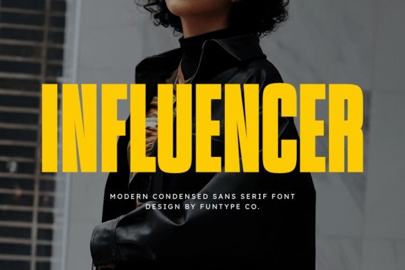 Influencer Sans Serif Font is a serious, modern condensed sans serif font with an extremely bold and commanding presence. It features strong geometric lines and a tight structure, making it perfect for powerful headlines, impactful branding, striking posters, editorial layouts, and any design needing a confident, loud, and assertive voice.