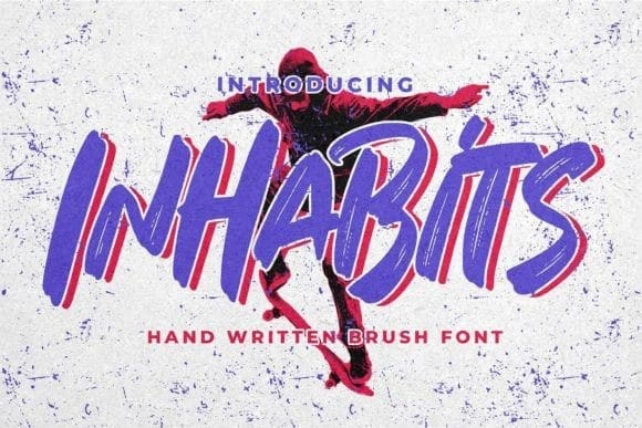 Inhabits Brush Font is a fun handwritten font. Natural, classy, clear, and dramatic, it is perfect for your next creative project. Add it to your logos, printed quotes, invitations, cards, product packaging, headers, logotypes, letterheads, posters, watermarks on photography, branding, invitations, advertisements, stationery, weddings, labels, and special events, and it will give your designs a charming, authentic, and relaxed look.