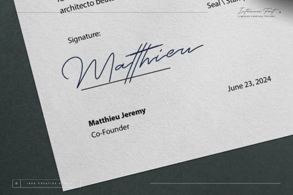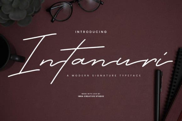 Intanuri Script Font a modern signature typeface, epitomizes contemporary elegance with its sleek lines and fluid strokes. Each letter is meticulously crafted to emulate the sophistication of a handwritten signature, blending personalized flair with a sleek, modern aesthetic. The effortless curves and balanced proportions of Intanuri create a distinctive rhythm, allowing it to seamlessly adapt to a myriad of design applications, from branding to digital media.