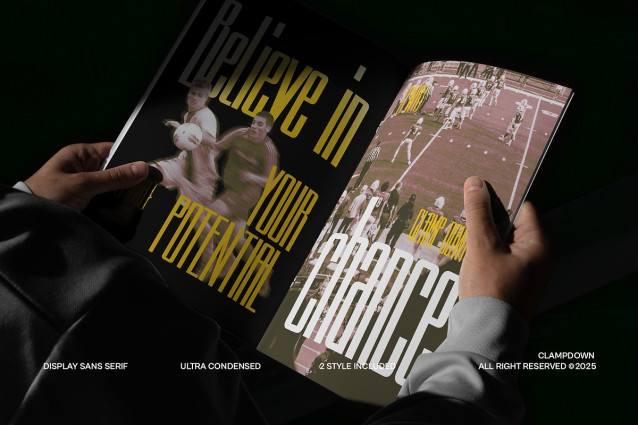 IT Clampdown Font is a striking ultra-condensed sans serif display font designed to deliver maximum impact in minimal horizontal space. With its tall, bold letterforms and strong vertical emphasis, Clampdown commands attention and ensures that every word stands out with authority. This typeface is ideal for posters, sports graphics, editorial headlines, branding projects, event promotions, and bold statement designs where space is limited but style cannot be compromised. Its narrow proportions make it perfect for creating powerful typography that feels modern, dynamic, and intense. Featuring 2 styles for added flexibility, Clampdown adapts effortlessly to a variety of creative needs. Whether you’re designing for athletic campaigns, music promotions, fashion branding, or high-energy advertising, this font brings boldness and clarity to the forefront.