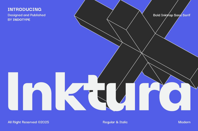 IT Inktura Font a bold and striking sans-serif typeface that marries industrial strength with sophisticated typographic detailing. Defined by its prominent ink traps—those sharp, angled cuts at the junctions of letterforms—Inktura is engineered for maximum impact in both print and digital display. This functional design feature, rooted in traditional printing, evolves into a bold aesthetic statement, giving the font a distinctive architectural quality. Available in both commanding Regular and dynamic Italic styles, Inktura is built for the modern designer who isn’t afraid to make a statement. Its robust weight and geometric construction command attention, making it perfect for headlines, branding, posters, and editorial design where confidence is key. Inktura is more than just bold; it’s intelligently bold, designed to hold its integrity at any scale.