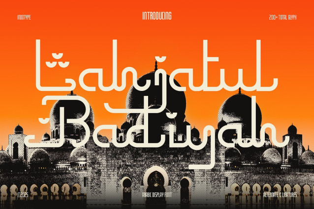 Lahjatul Badiyah is ideal for headlines, posters, branding, editorial layouts, or any visual work that requires an elegant connection between Arabic aesthetics and modern display typography.