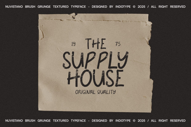 Nuvistano Font is a brush grunge sans serif typeface that brings raw energy and handcrafted imperfection to your designs. Its textured strokes and organic brush details make every letter look alive — perfect for projects that need a bold, rebellious, and authentic feel. Designed by Indotype (2025), Nuvistano combines rough brush texture with solid sans serif structure, creating a balanced harmony between chaos and clarity. The worn edges, paint splatters, and expressive flow give it a distinctive handmade touch — making it ideal for vintage posters, streetwear branding, music album covers, and creative headlines. With its natural irregularity and dynamic presence, Nuvistano captures the true spirit of grunge artistry — bold, untamed, and full of character.
