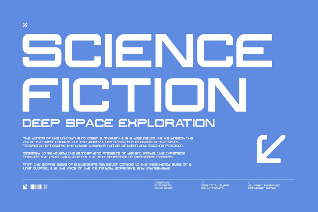 | Classification: | Branding Fonts, Display Fonts, Geometric Fonts, Sans Serif Fonts, Style / Aesthetic Fonts, Techno / Futuristic Fonts |