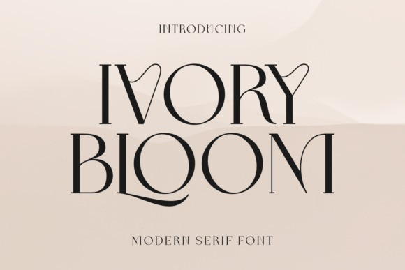 Ivory Bloom Font, a modern serif font. The font itself is a high-contrast serif with unique, stylized letterforms and swashes that have a delicate, floral quality, perfectly matching its name.