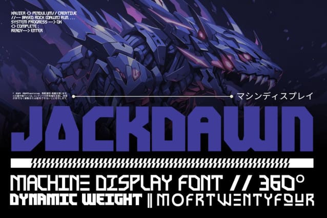 Jackdawn Font is used only for demos (Demo license). If you want to use this font for commercial use please contact: https://creativemarket.com/MohamadFarhanRamadha/144900754-Jackdawn-Machine-Display-Font?u=fontlot123