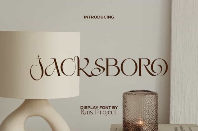 Jacksboro Font is a stunning serif display font. This font has a luxurious and beautiful appearance with charming line variations. It will be good for any designs, such as brand image, custom design, flyer, invitation, label, magazine cover, marketing material, menu, poster, product packaging, quotes, signage, stationery, website page, and more!