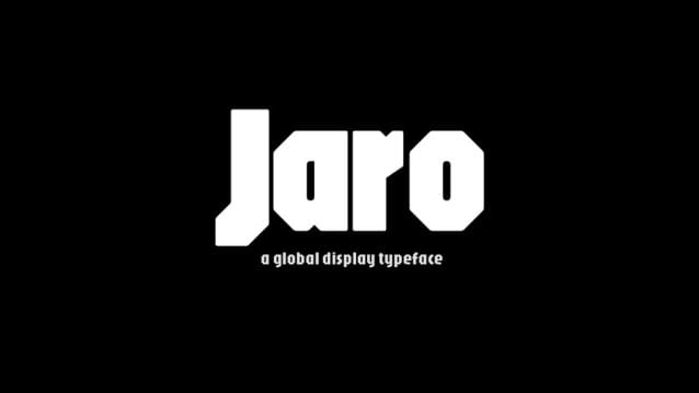 Jaro font is characterized by its strong, heavy lines and geometric simplicity, reflecting the artist’s bold approach to composition and design.