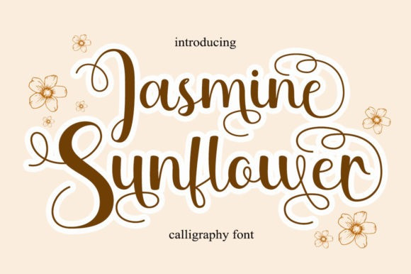 Jasmine Sunflower Font is a thin lettered and graceful script font. Fall for its ravishing style and use it to create lovely designs. JasmineSunflower is PUA encoded which means you can access all of the glyphs and swashes with ease!