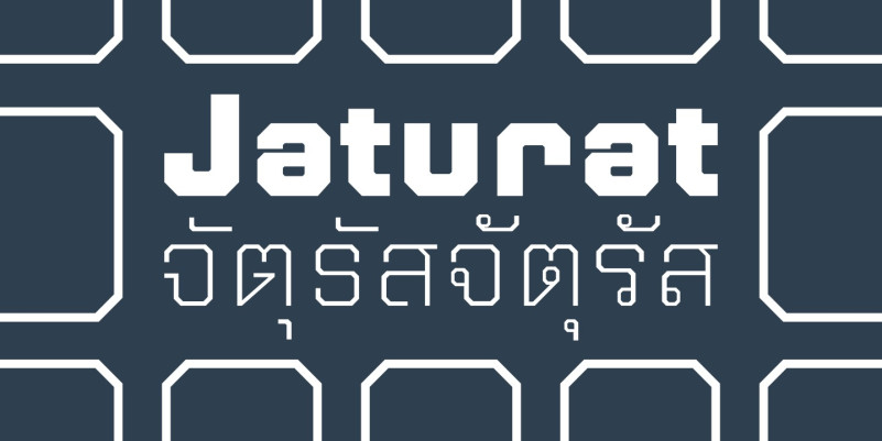 Jaturat Display Font, It has a distinctive futuristic design. Use it to create time-traveling movie posters for futuristic or extraterrestrial productions. Fantastic for creating unique cards and artwork for science fiction fans.This font was created to be used for universal events like game competitions, wall advertisements, and poster designs. Your design can look better with a simple combination. Purchase it right away to enjoy using it ahead of the competition.