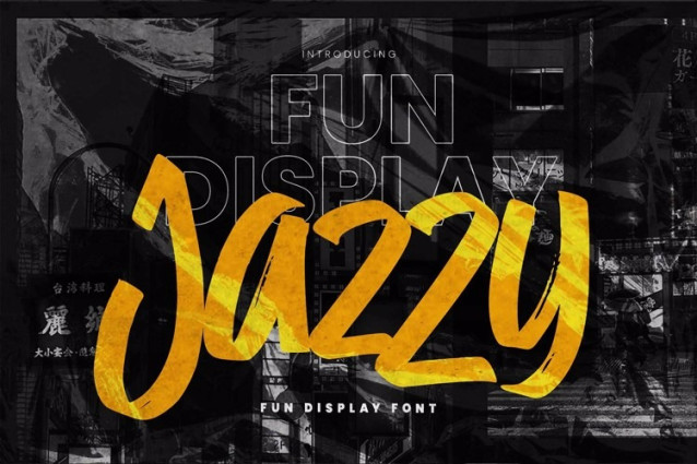 Jazzy Font is a Fun Display Font, with bold shapes and quicky details, this font is perfect for making a strong statement in your designs.