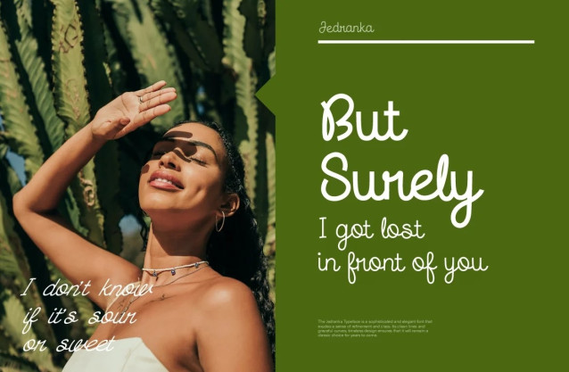 Jedranka Script Font is a minimalist script font that exudes formal elegance with a touch of modern sophistication. Its refined, flowing letterforms are designed to convey a sense of grace and professionalism, making it ideal for high-end invitations, formal correspondence, and upscale branding. The clean, understated curves of Jedranka maintain a delicate balance between simplicity and refinement, ensuring a polished and timeless appearance. Perfect for projects that require a formal yet stylish touch, Jedranka brings a classic script aesthetic to contemporary designs, offering a beautiful and understated elegance.