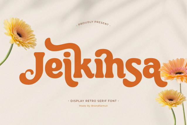 Inspired by 70s retro aesthetics, this typeface blends groovy shapes with bold serif details, making it versatile for both modern and vintage-inspired projects. Jeikinsa is the ideal font for branding, packaging, posters, editorial layouts, and social media graphics. Its distinct character ensures that your design stands out with a bold retro look.