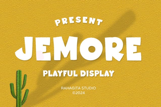Jemore Display Font, a playful bold display font that combines a classy retro vibe with a youthful, joyful spirit. Perfect for kids’ projects, packaging design, book titles, logos, flyers, branding, banners, crafting, and invitations, Jemore adds a fun and lively touch to any creative work. Its vibrant and cheerful style ensures your designs stand out, making them both eye-catching and memorable. Ideal for both digital and print, Jemore Display is your go-to font for adding a playful flair to any project.