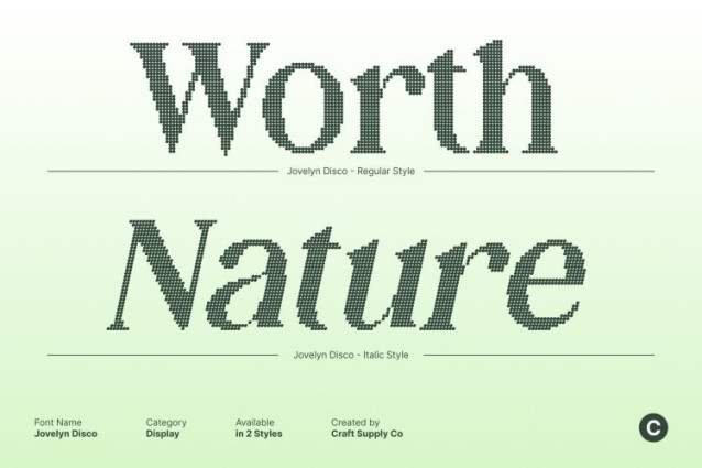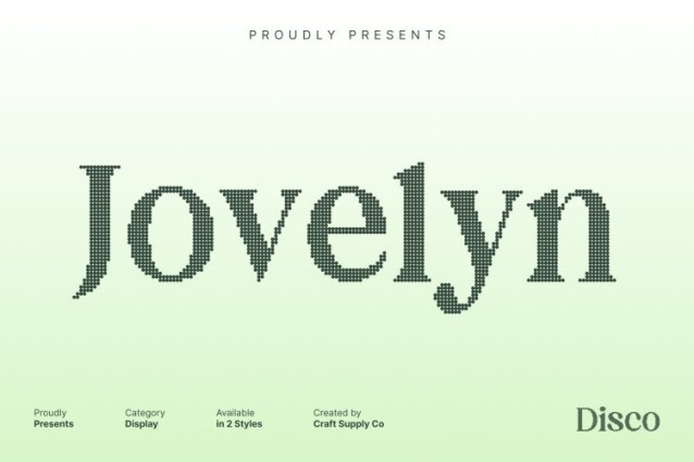 Jovelyn Disco Font This is a retro display serif font that brings the glamour, rhythm, and shimmering excitement of the disco era into modern design. With its bold curves, stylish detailing, and confident presence, this font captures the electric atmosphere of vintage nightlife where lights flash, music pulses, and everything feels alive.