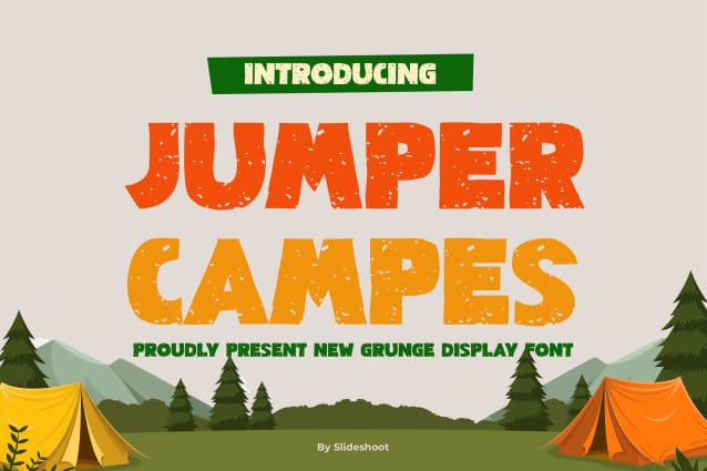 Jumper Campes Bold Unique Display Font is a modern, trendy, bouncy and cute display font. It has a unique character with wood theme. It is perfect to be combined with invitation card designs, company logos, movie titles, movie names, business cards, book titles, brand names and various other designs.