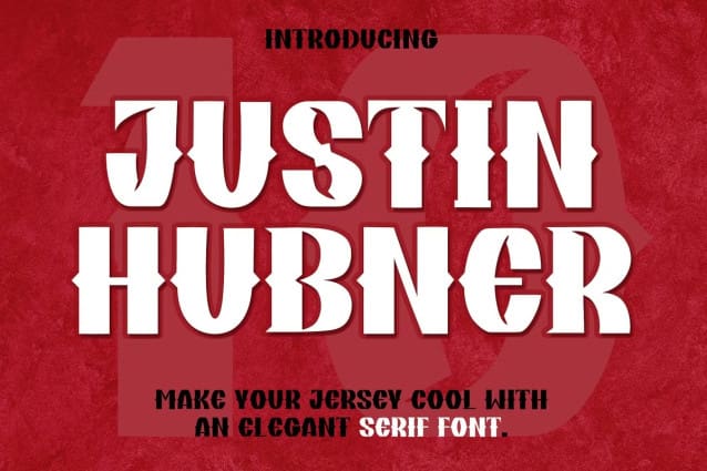 Justin Hubner Font, an exquisite serif font designed to infuse your jersey with an effortlessly cool and elegant vibe. Beyond sportswear, Justin Hubner seamlessly serves all your design essentials. It’s the perfect font to uplift logos, reinforce branding, and add sophistication to any design project. With JustinHubner, elegance is not just an addition; it’s at the heart of every letter and curve.