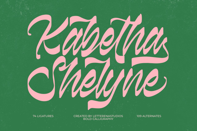 – Here is the link to purchase full version and commercial license: https://letterena.com/product/kabetha-shelyne-bold-calligraphy-font/