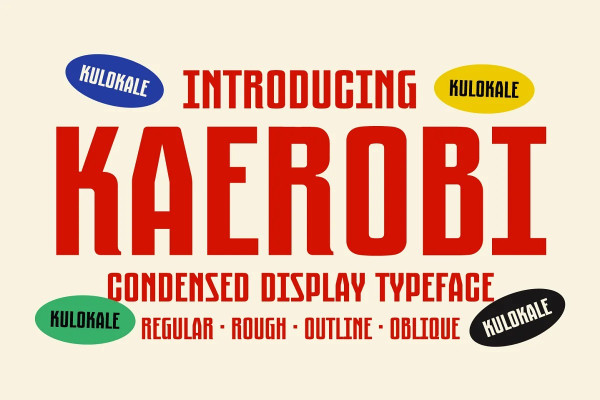 Kaerobi Display Font, is an condensed display font, and with a style that is very different from the others. This font comes in four styles, Regular, Oblique, Rough, and Outline Version.