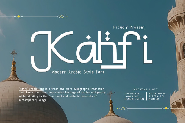 Kahfi Typeface is a modern Arabic-style font designed for projects that demand elegance and cultural depth. Perfect for branding, Islamic-inspired visuals, and stylish logos, Kahfi offers a unique aesthetic that stands out in modern designs.